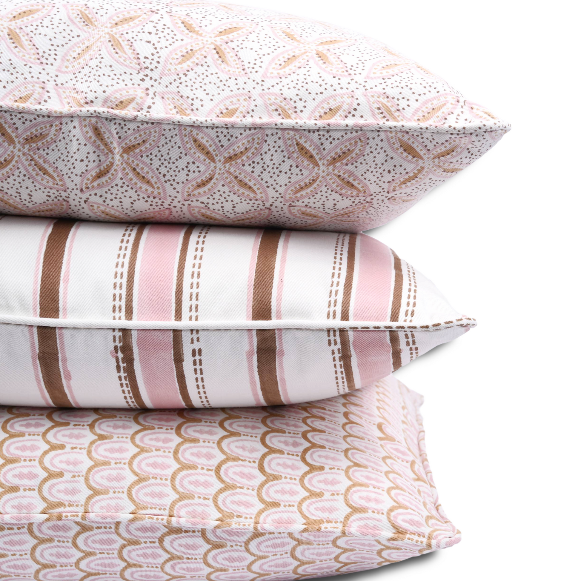 To maintain the beauty and quality of your cushion cover, we recommend gentle care. Hand wash or machine wash separately in cold water using a mild detergent. Avoid soaking, wringing, or rubbing the fabric, and do not use bleach or fabric softeners, as these may damage the fabric. For spot cleaning, gently dab the area with water (do not rub). Tumble dry on low heat and iron at a medium temperature if required.