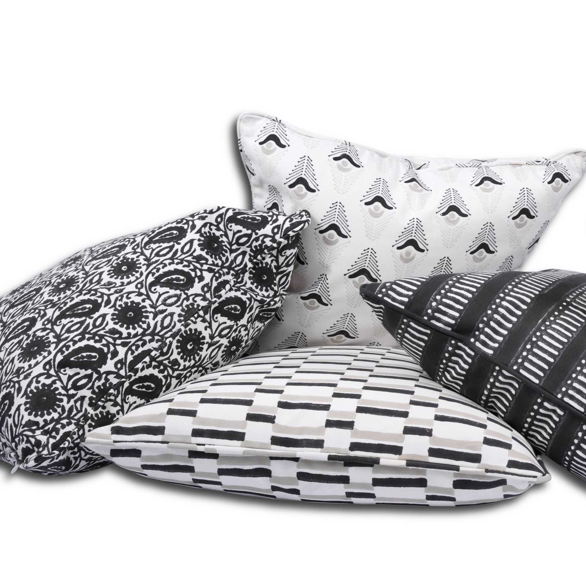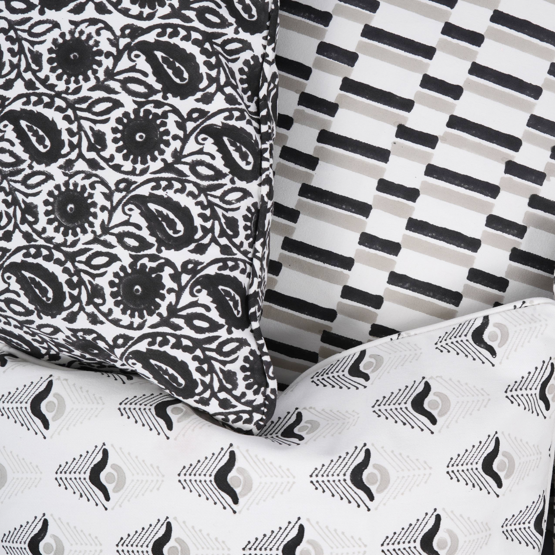 Our Evia Charcoal Cushion Covers, Inspired by stylized floral geometry and the meaning of Evia -life and quiet renewal. This pattern reflects a sense of calm vitality. Its repeated blossom-like forms create a balanced, organic rhythm that brings subtle elegance and a refined, living energy into any space.