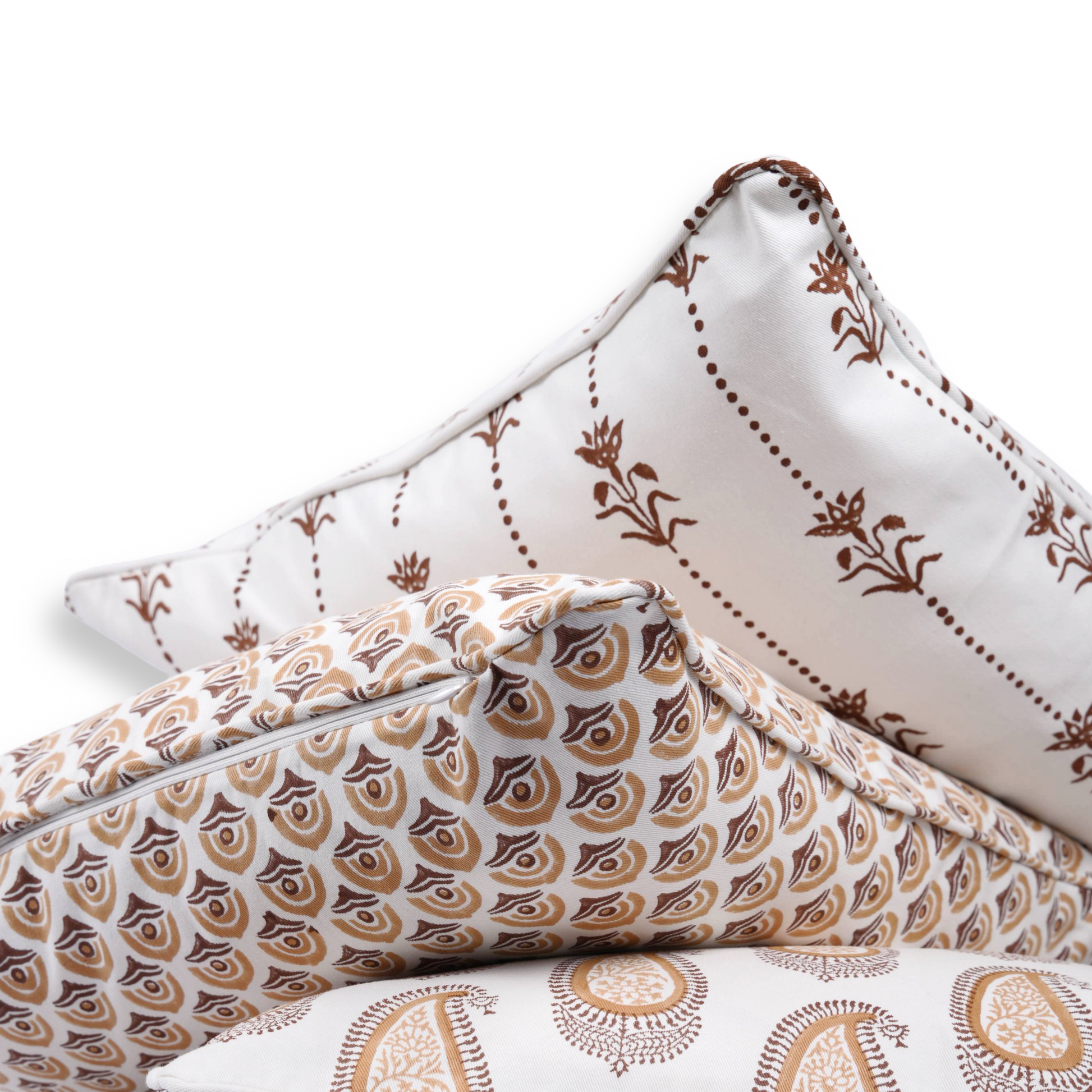 Our Reed Soil Cushion Covers, Inspired by the slender, upright form of natural reeds plants known for their resilience and graceful movement the Reed Soil pattern brings a sense of calm structure and organic rhythm. The vertical floral lines echo the way reeds grow in harmonious clusters, symbolizing strength, flexibility, and quiet balance within a space.